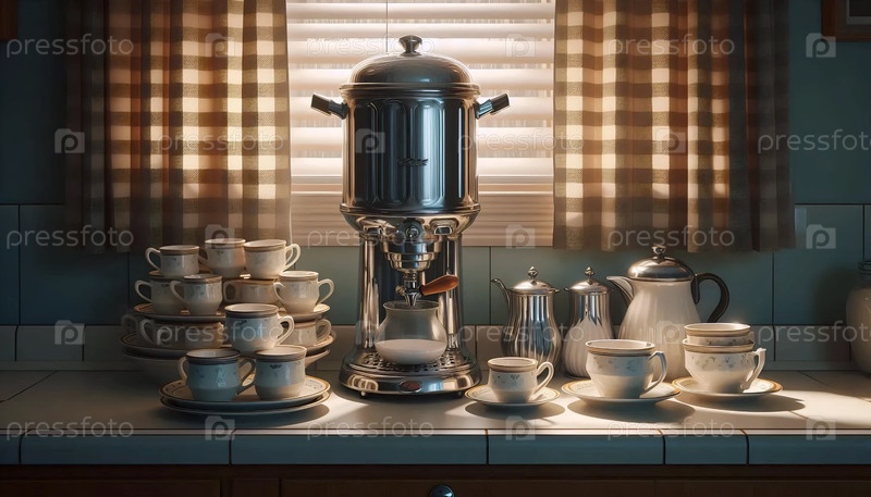 Служба кофе в ресторане Retro, Ai generated image