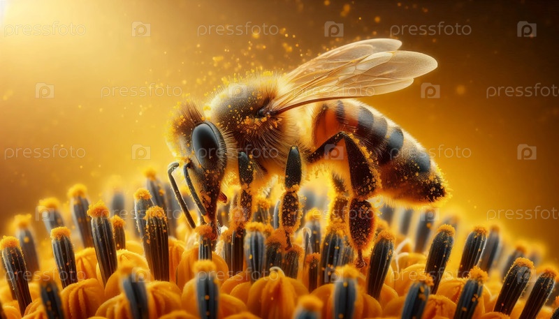Пчелиный опыляющий макро, Ai generated image
