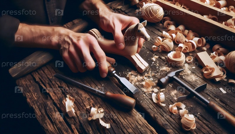 Деревянная игрушечная резьба мастерская, Ai generated image