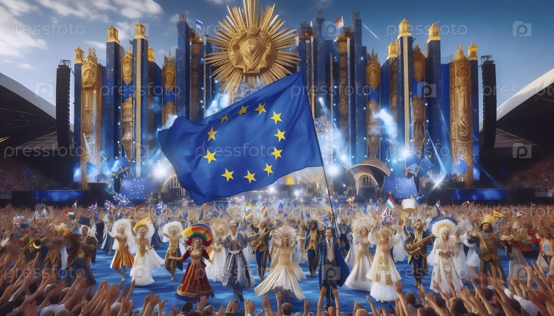 Флаг Европейского Союза в культурном фестивале разнообразие, Ai generated image A