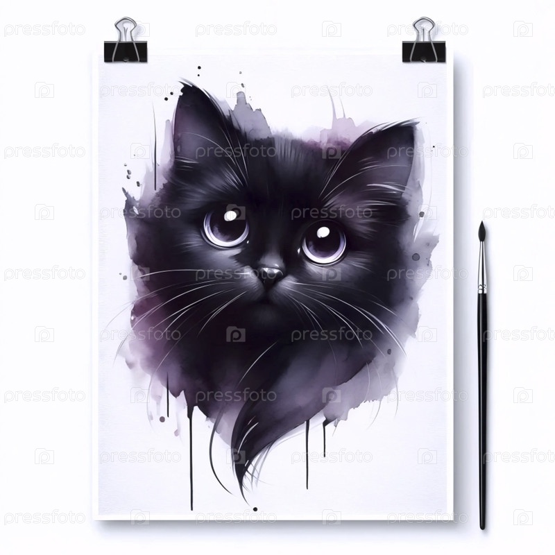 Минимализм Красивый черный кошачий принт, Ai generated image A