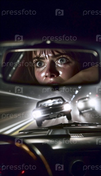 Зеркало заднего вида сцены преследования вблизи, Ai generated image