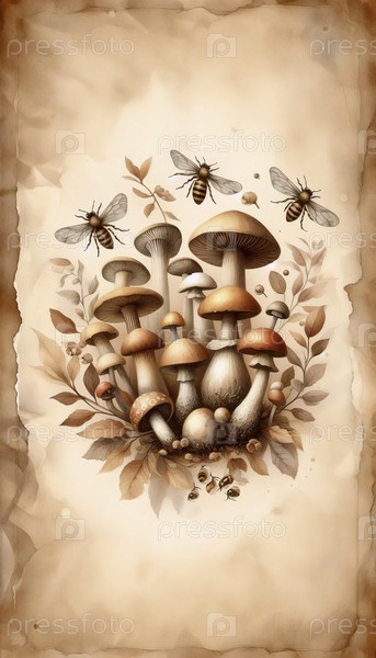 иллюстрация пчел и грибов