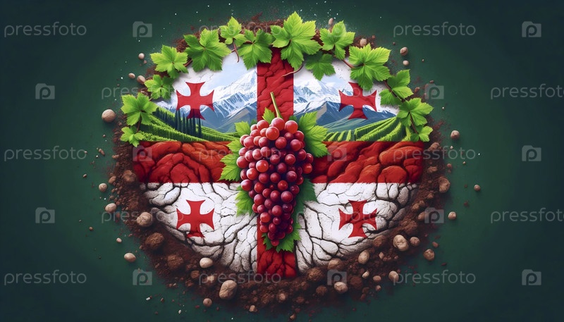 Грузинский флаг в кавказских горных виноградниках, Ai generated image