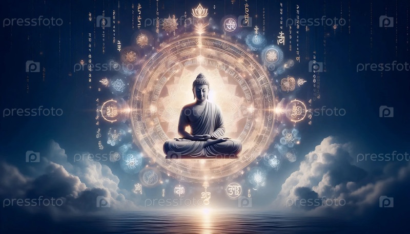 Будда с мантрами, Ai generated image
