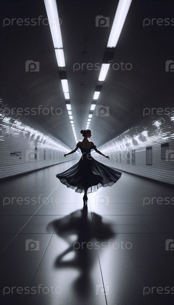 Женщина вальсирует одна на пустой станции метро, Ai generated image