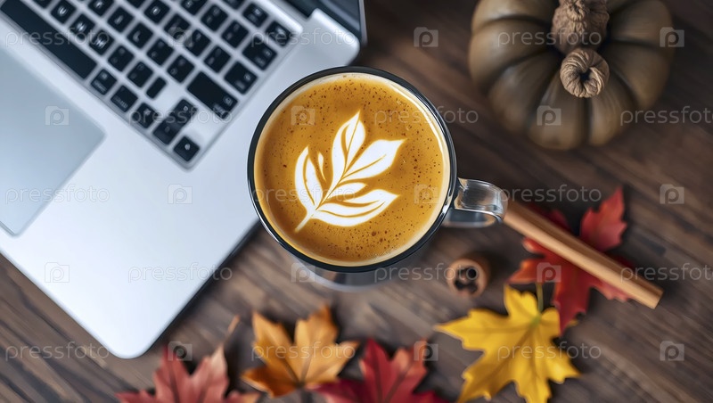 Искусство, ноутбук с чашкой кофе, Ai generated image Lat