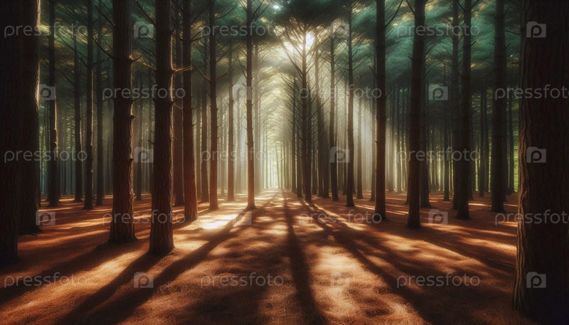 Устойчивый священный сосновый лес, изображение создано искусственным интеллектом