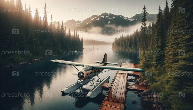 Гидроплан, пришвартованный на пирсе дикой природы Lodge, Ai generated image