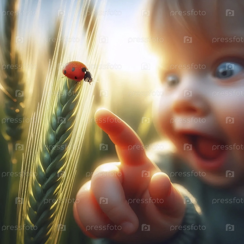 Первая встреча малыша с летающей бабочкой, Ai generated image