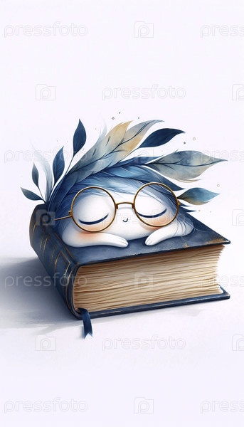Акварельный арт-принт Sleepy Book, Ai создал изображение A