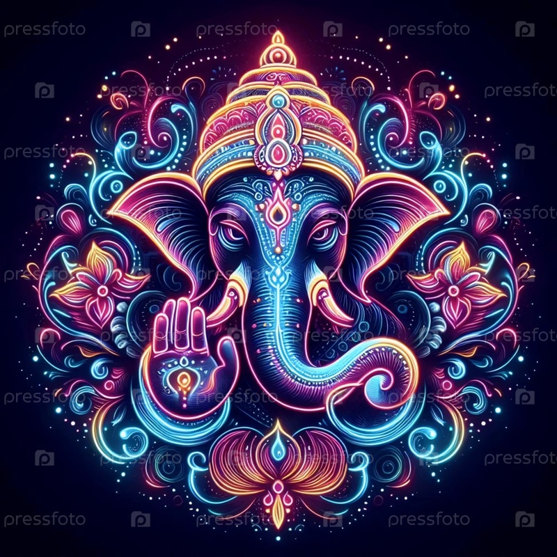 Господь Ганеша с неоновым светом, Ai generated image A