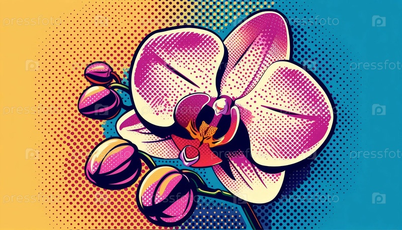 Орхидея в стиле поп-арта, Ai generated image