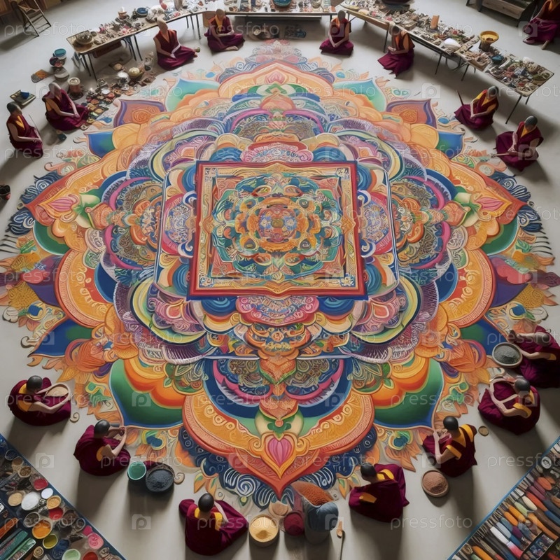 Песчаная мандала тибетских монахов, Ai generated image