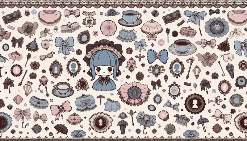 A kawaii pattern of lolita fashion elements, Ai generated image (кавайский шаблон модных элементов Лолиты), созданный Ай