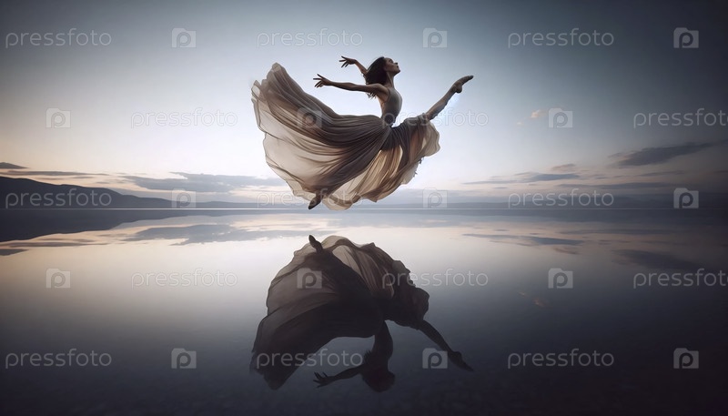 Современный танцор, прыгающий над водой, Ai generated image