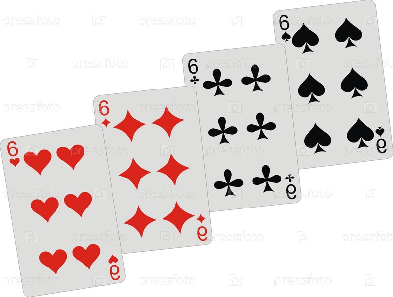 Четыре карточных шестерки на белом фоне