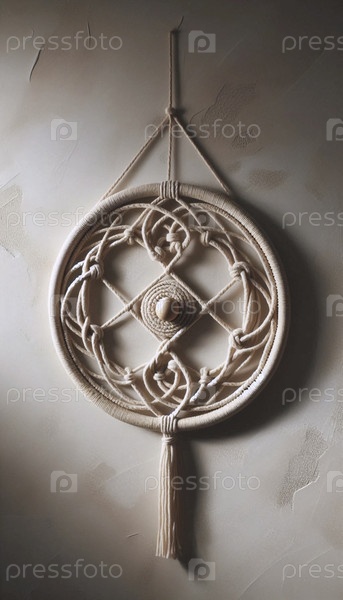 Круговая макрамовая стена, висящая с деревянным бисером, Ai generated image