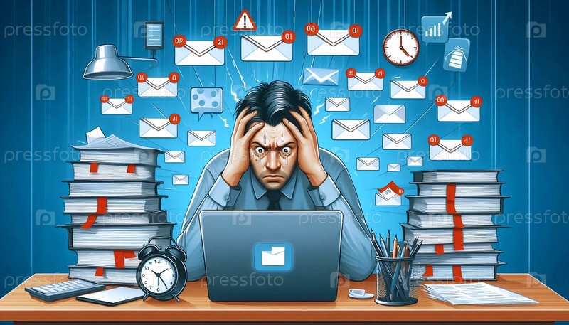 Переполненный почтовый ящик на экране ноутбука, Ai generated image