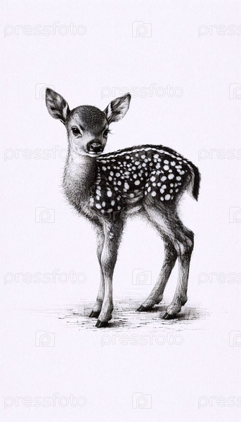 Fawn ink drawing art print, Ai generated image A Аи создал изображение с помощью чернил