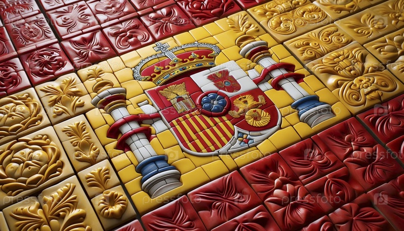 Испанский флаг, сделанный из традиционных керамических плиток, Ai generated image