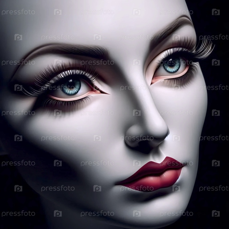 Макияж, нанесенный на голову гипсового парика, Ai generated image