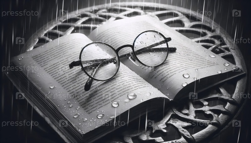 Пара очков для чтения на открытом, крылом дождевом романе Ай создала изображение