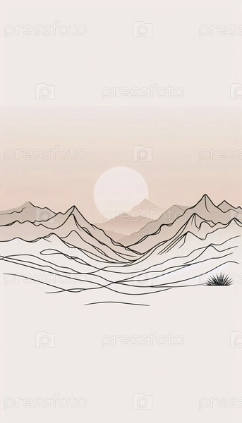 Минималистское линейное искусство горного хребта, Ai generated image