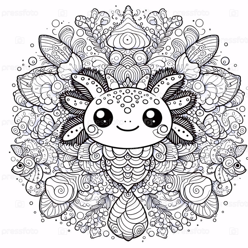 Кавайская подводная мандала красочная страница, Ai generated image