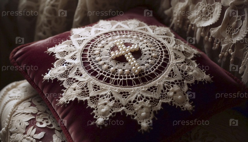Шнуровое полотенце с маленьким жемчужным крестом в центре, Ай создал изображение