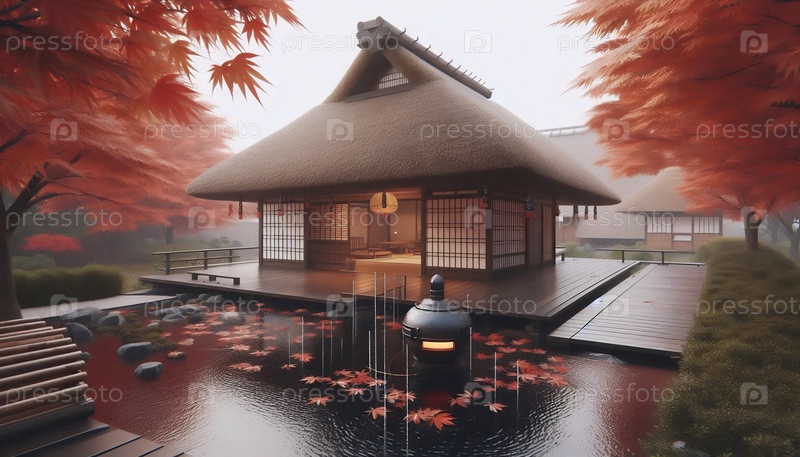 Японская ферма Minka Farmhouse, ИИ сгенерированное изображение
