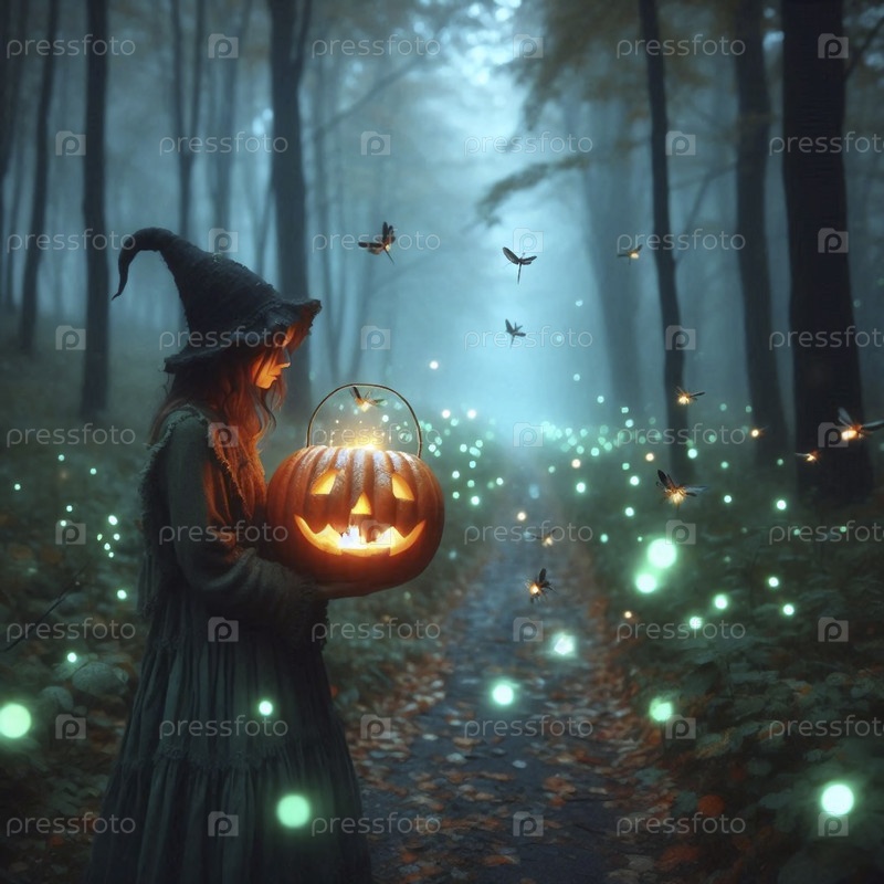 Охранитель свечей в тыквенном фонарике, Ai generated image