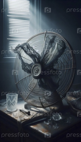 Остановившийся вентилятор с застрявшим внутри куском ткани, Ай создал изображение