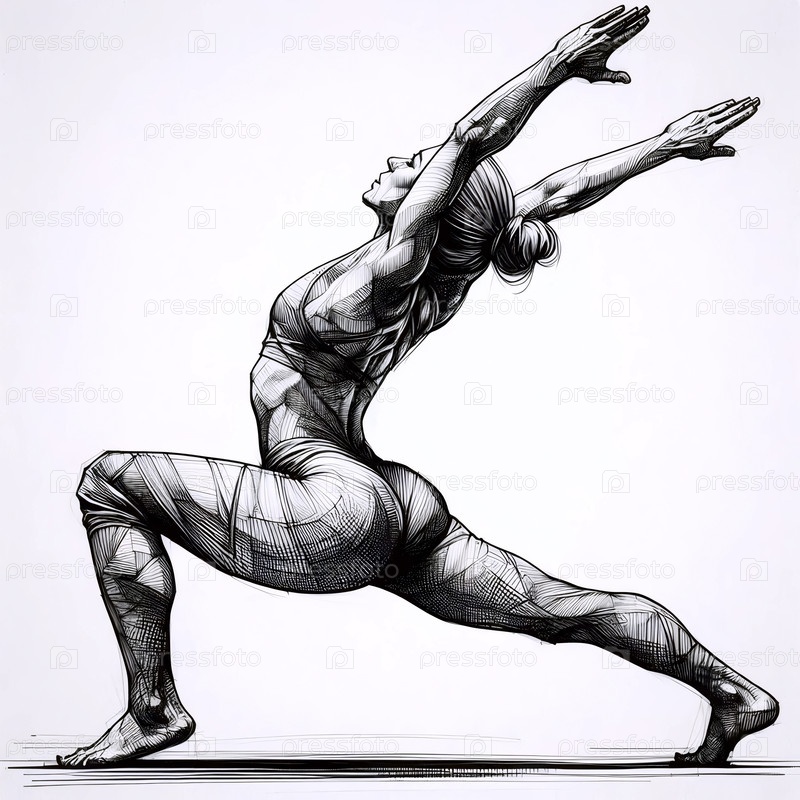 Graceful Warrior II Pose A Yoga Illustration, Ai создал изображение