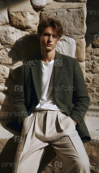 Мужчина в твидовом блейзере и льняных брюках, Ai generated image