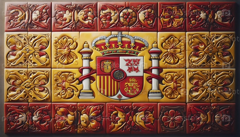 Испанский флаг, сделанный из традиционных керамических плиток, Ai generated image