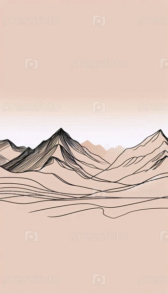 Минималистское линейное искусство горного хребта, Ai generated image