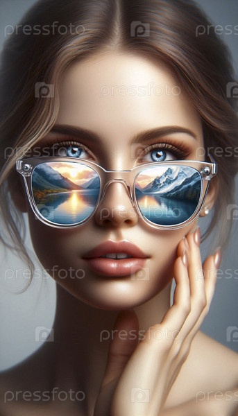 Очки, отражающие акварельные пейзажи, Ai generated image