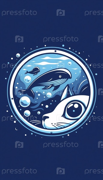 Минималистическая подводная иллюстрация глубоководного кота, Ai generated image