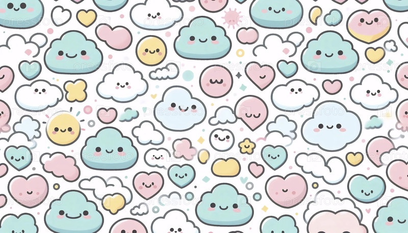 Kawaii background милый бесшовный геометрический шаблон, Ai generated image
