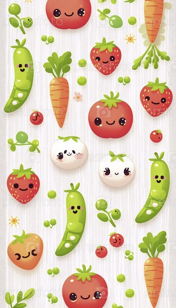 Образец садового сада фруктов и овощей kawaii для кухонного инвентаря, Ai generated image