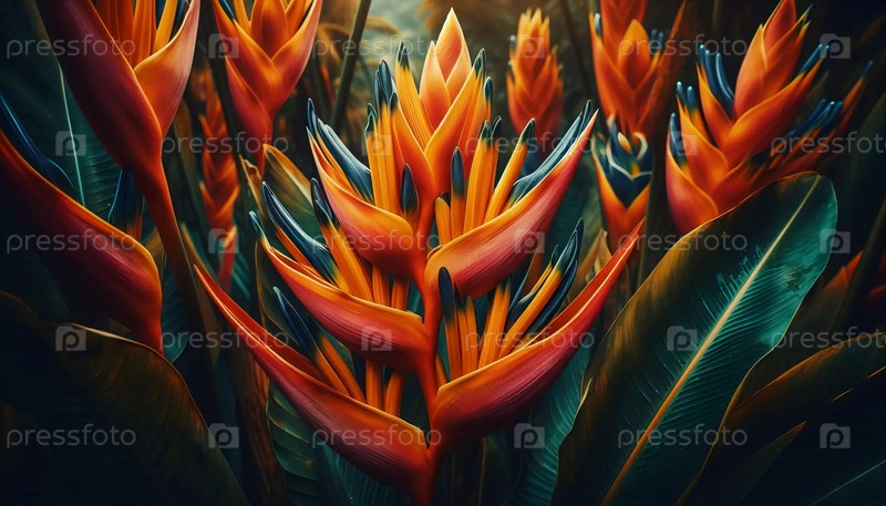 Огненно-красный тропический хеликония ближайший план, Ai generated image