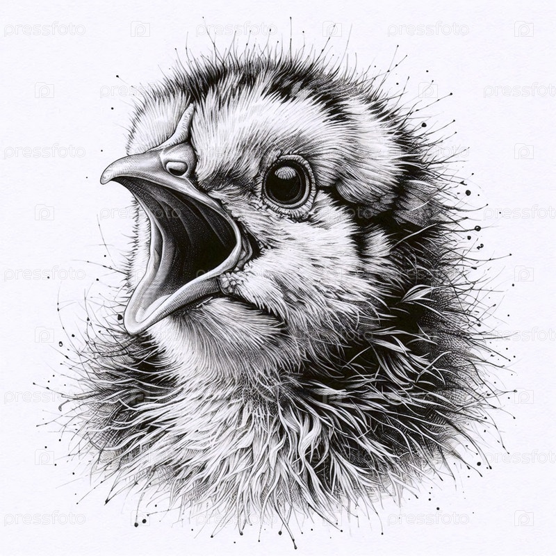 A Chirping Chick чернила рисования художественная печать, Ai generated image