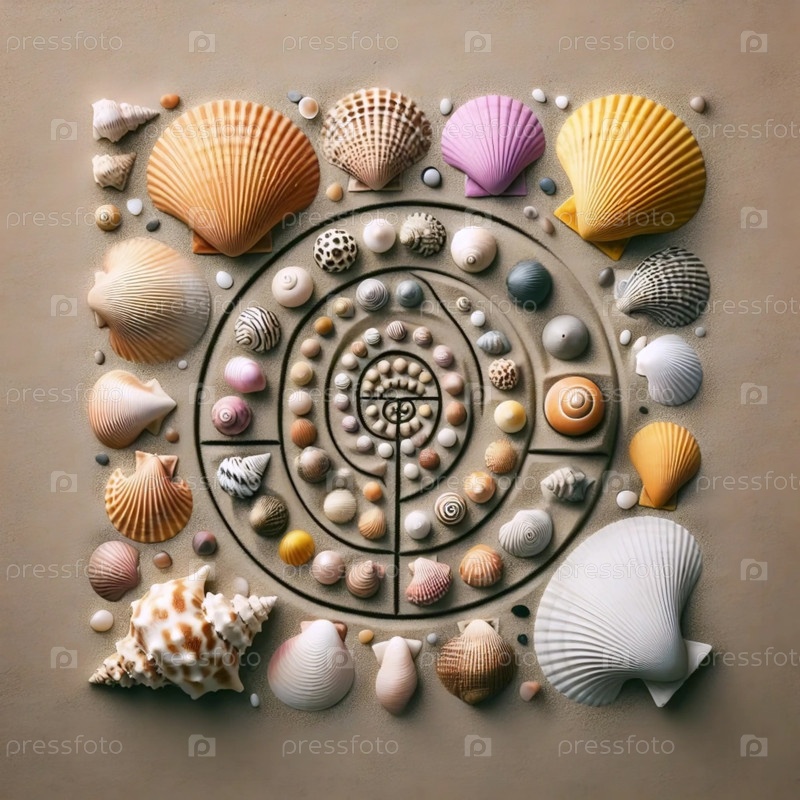 The Fibonacci в коллекции морских раковин, Ai generated image