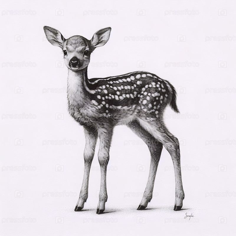 Fawn ink drawing art print, Ai generated image A Аи создал изображение с помощью чернил