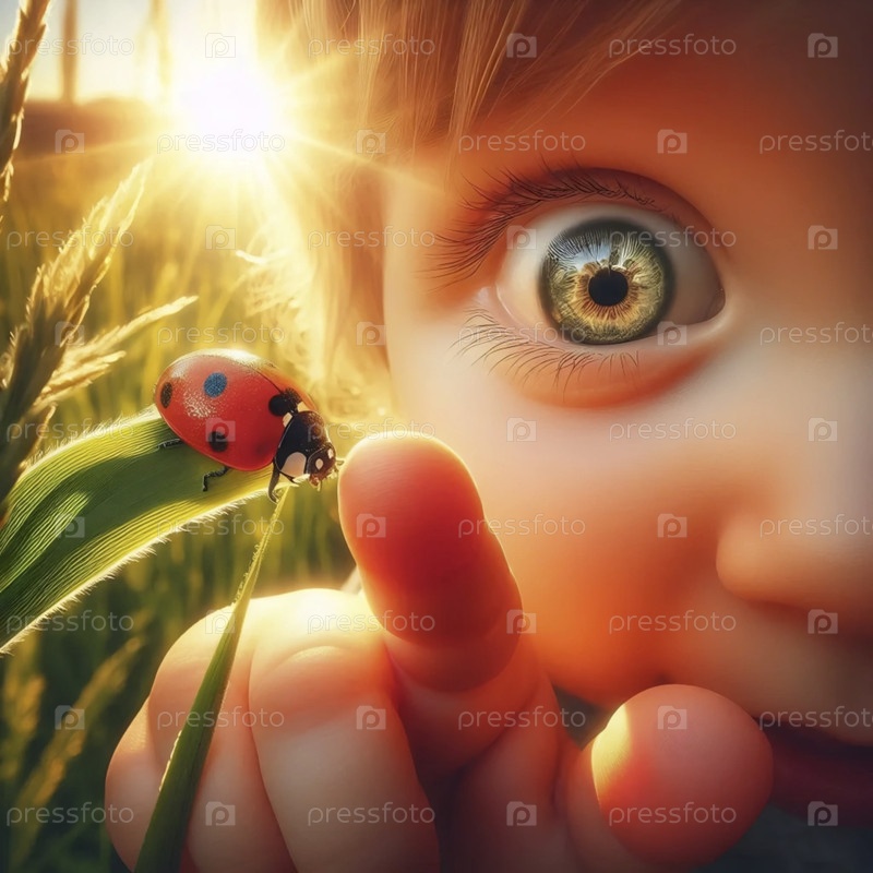 Первая встреча малыша с летающей бабочкой, Ai generated image