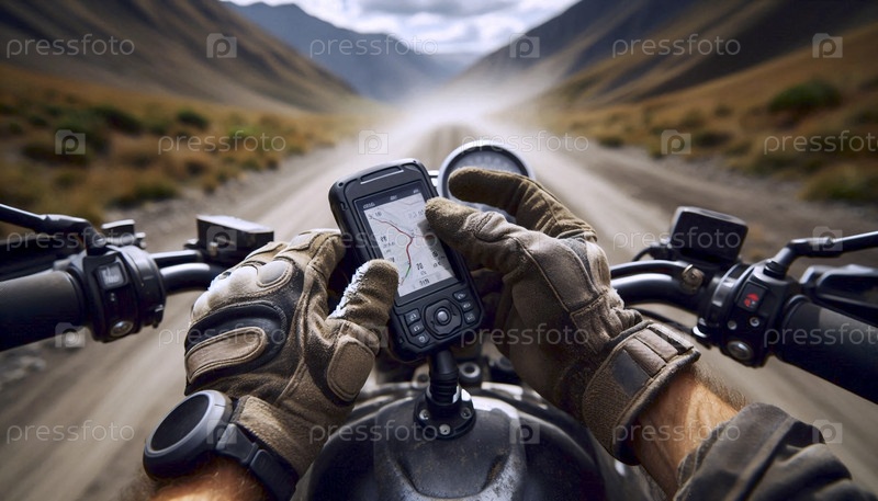Быстрый пит-стоп мотоциклиста: руки проверяют навигационное устройство на прочном руле, Ai generated image