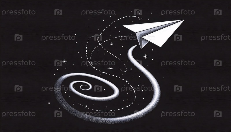 Бумажный самолет в полете чернила рисование художественного рисунка печать на черном, Ai generated image