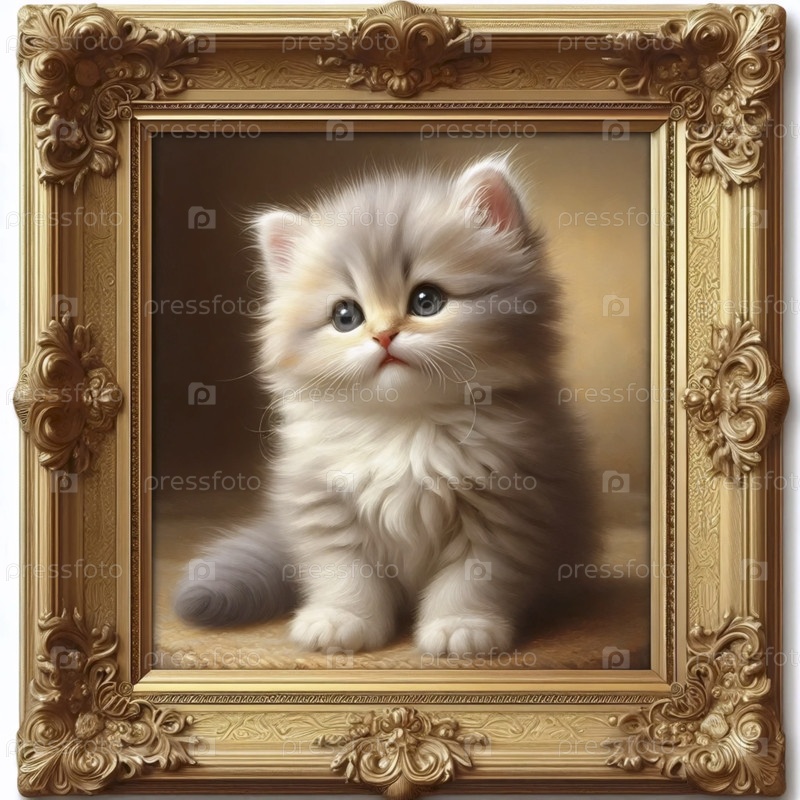 Миниатюрная масляная живопись Милая кошка в золотой раме, A Ai generated image