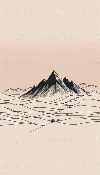 Минималистское линейное искусство горного хребта, Ai generated image